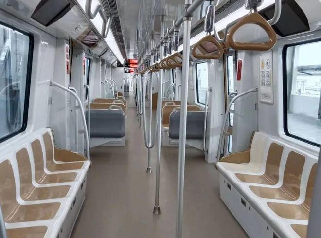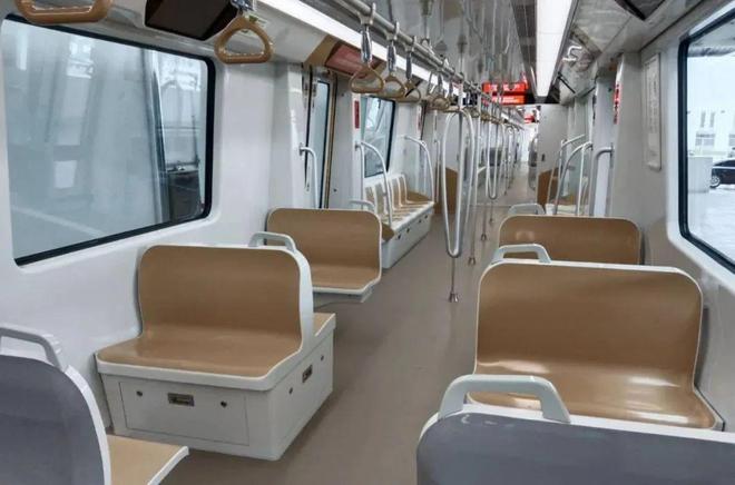 列车采用4节车厢编组的市域B型车,每节车厢长约20米、宽约2.8米、高约3.8米。全车最大载客能力可达1300人,最高运行速度可达120千米/小时。车厢内采用部分横向座椅的布置方式,并新增行李架。行李箱设有“专座”,行李架底部有防滑凹槽和静音胶条,确保列车飞驰时行李稳固。