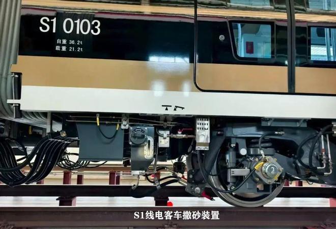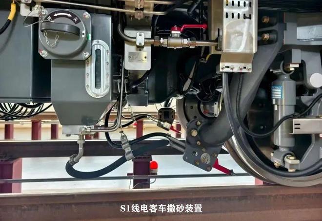 列车新增了撒砂系统。当轨面湿滑导致列车严重滑行时,该系统启动撒砂以增大列车与轨道间的摩擦系数,从而缩短制动距离,提高安全性。此外,列车受电弓首次配备了除冰碳滑板。在冬季雨雪天气,该装置利用电客车运行机械清除接触网上的积冰,保障车辆安全运行。